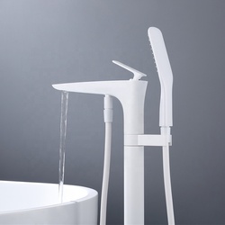 Grifos de ducha contemporáneos Excelente nuevo y elegante grifo de pie de suelo blanco puro Juego de bañera y ducha de baño