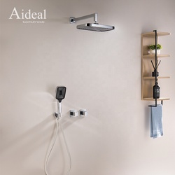 Sistema de ducha oculto en la pared moderno cuadrado Popular, válvula mezcladora termostática de 2 funciones con cabezal de ducha de lluvia grande