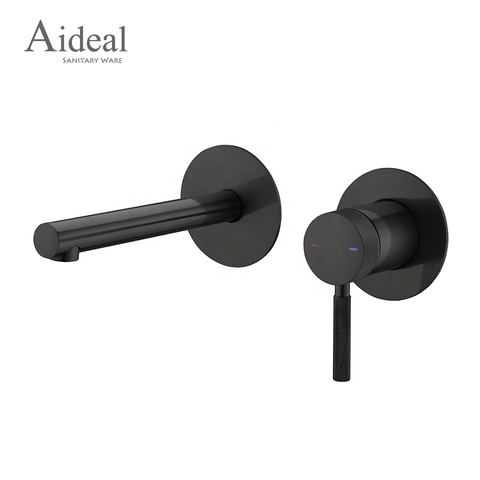 Grifo moderno de lavabo de pared de latón de un solo mango Diseño moleteado negro mate Grifos medidos suministrados por la fábrica Montado en la pared de cerámica