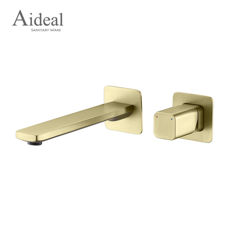 Grifo de latón de un solo mango de alta calidad al por mayor | Grifo de lavabo de pared oculto moderno de bronce cepillado PVD