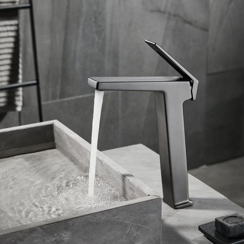 Grifo de lavabo de hotel | Lujo monomando alto H59 Cuerpo de latón PVD Bronce cepillado