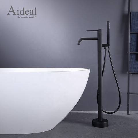 Grifo de soporte de suelo negro mate de latón completo | Grifo de ducha de baño y bañera de cascada duradero