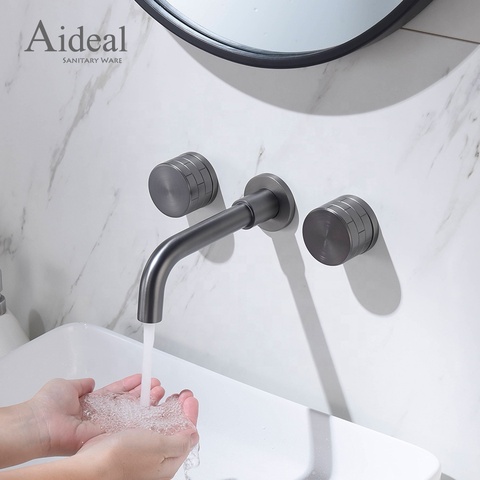 Hotel de lujo PVD bronce cepillado grifos de agua de latón moderno | Grifo de cerámica de doble manija montado en la pared de un solo orificio