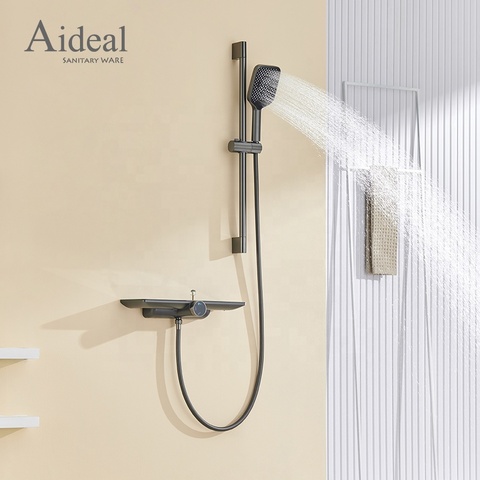 Juego de ducha de latón bidireccional ordinario para el hogar, chorro/masaje/rociador suave, pantalla LED, bañera, columna deslizante con batería incorporada, uso en Hotel