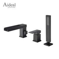 Sistema de bañera y ducha de 3 piezas a buen precio | Grifo frío y caliente de montaje en escritorio con caño de cascada de estilo común