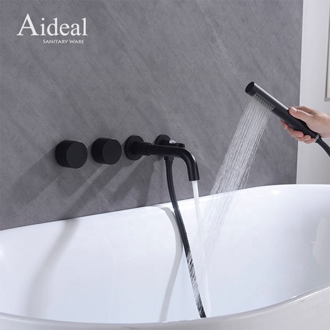 Grifo de bañera europeo de doble manija, latón macizo oculto, 2 funciones, montado en la pared, grifo de baño, Cartucho de cerámica para lluvia, uso de Hotel