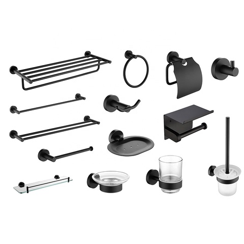 Accesorios de baño de diseño europeo Juego de accesorios de baño de 8 piezas de acero inoxidable negro mate
