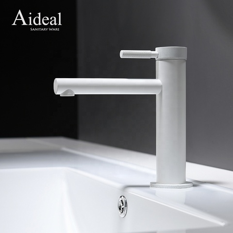 Grifo de lavabo de latón con patrón moleteado blanco puro con cartucho de cerámica Diseño moderno de un solo orificio para apartamento