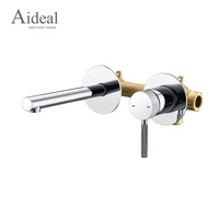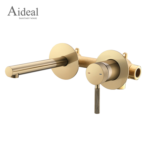 Grifo de lavabo de latón oculto dorado cepillado montado en la pared de diseño moleteado Aideal para Baño